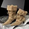 Retro Lace Up Pointed Toe Ankle Boots Women Suede Low Heel Fashion Dress Short Boot Ladies New Autumn Women Boots Botas Mujer