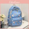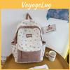 Fashionable Blocked Color Flower Pattern Letter Decor Student Casual Backpack