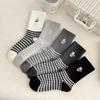 Koťátko Výšivka Kreslený Kostkovaný Středně dlouhé Dámské Ponožky - Preppy Styl Japonské Kostkované Pruhy pro Podzim/Zimu