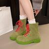 Retro contrasting color platform versatile strap-up square heel short boots autumn and winter fashion suede strap women's shoes thick heel Martin