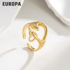 18k Gold-Plated Stainless Steel Heart-Shaped Adjustable Ring - Fashionable & Versatile Titanium Steel Jewelry