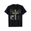 European Sizes Men's Christian Faith Camouflage Hunting And Fishing Graphic Tee - Featuring a Design with a Cross, Fish, And Antlers