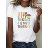 European Sizes Women'S Casual "Baking Is My Therapy" Graphic T-Shirt - Short Sleeve Crew Neck, Summer & Spring Top with Baking Icons