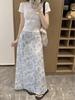 Cool Printed Chiffon Skirt Women's Summer Mid-length Small Fresh Floral High-waisted Over-the-knee Long Skirt