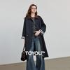 Chuyu Women's Spliced Corduroy Plaid Trench Coat