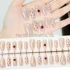 Autumn/Winter Cherry Blossom Cat Eye Press-On Nails - Cream Whitening Manicure Stickers