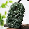 Xinjiang Hetian Jade Dragon & Pearl Zodiac Pendant - Ink Green