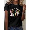 BIRTHDAY GIRL In Retro Font Print T-Shirt, Short Sleeve Crew Neck Casual Top for Summer & Spring, Women'S Clothing