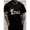 Men's Black T-Shirt King Crown Graphic Print Casual Streetwear Top for Everyday Wear