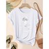 European Size Women's Casual Short Sleeve T-Shirt with Moon Rising Over Water Graphic Print - Soft Stretch Round Neck Top for Spring Summer Fall