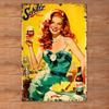 Vintage Schlitz Beer Ad Tin Sign Retro Mid-20th Century Aesthetic Pin-Up Art Metal Poster for Bar Pub Home Cafe Wall Decor