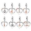 925 Silver Rose Gold Charms Open Heart Sparkling Polish Charm Pendant Clip Stopper Charms Fit Original Bracelet