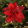 New 24cm Poinsettia Glitter Flower DIY Fake Flowers Christmas Flowers Party Supplies Wedding Decor Xmas Tree Decorations
