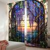 2Pcs Vibrant Stained Glass Wisteria Flower Printed Curtains Beautiful Home Decor For Bedroom Bathroom Living Room Dining Room