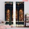 2pcs 2D Flat Printing Merry Christmas Popular Curtains Christmas Holiday Versatile Fabric Without Electricity Holiday