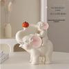 Cute Cream Elephant Mother and Calf Figurine for Living Room or Wine Cabinet Decoration