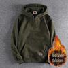 Men's Retro Fleece-Lined Cationic Hoodie - Winter Style Workwear with Pockets & Zipper