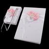 Crystal White Satin Guest Book & Signing Pen Set Wedding Supplies