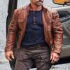 Men's Baseball Stand-up Collar Leather Jacket Spring and Autumn PU Leather Jacket Fashion Casual Leather Jacket Motorcycle Jacket