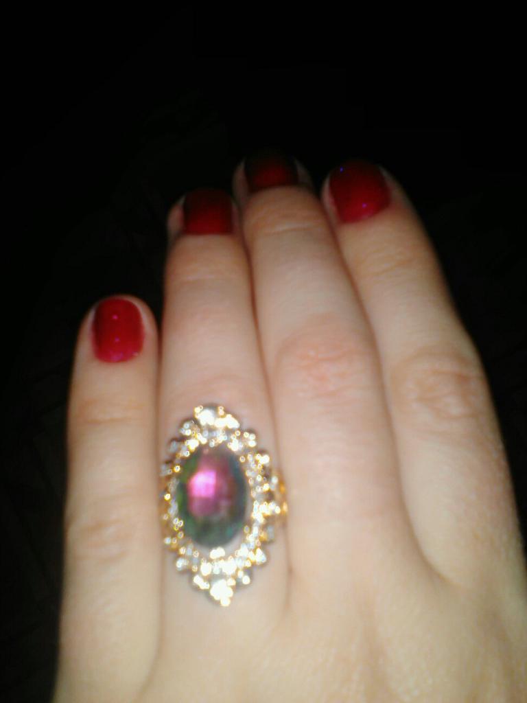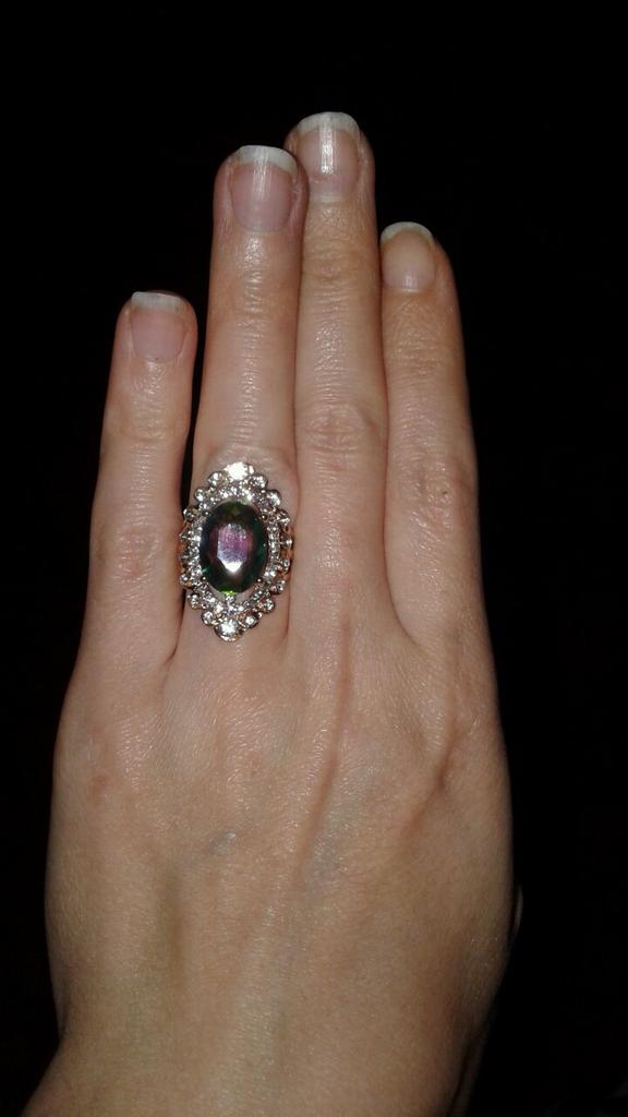 The ring is beautiful, but it arrived all bent, it was impossible to even try it on. I had to work with pliers, the metal is soft, it crumbles all over, and it was not easy to shape it. Such beauty requires decent metal, so that everything corresponds to the royal design. The stone plays with all the colors, the design is very beautiful, but the quality is bad. It's a shame. I was not satisfied with the purchase.