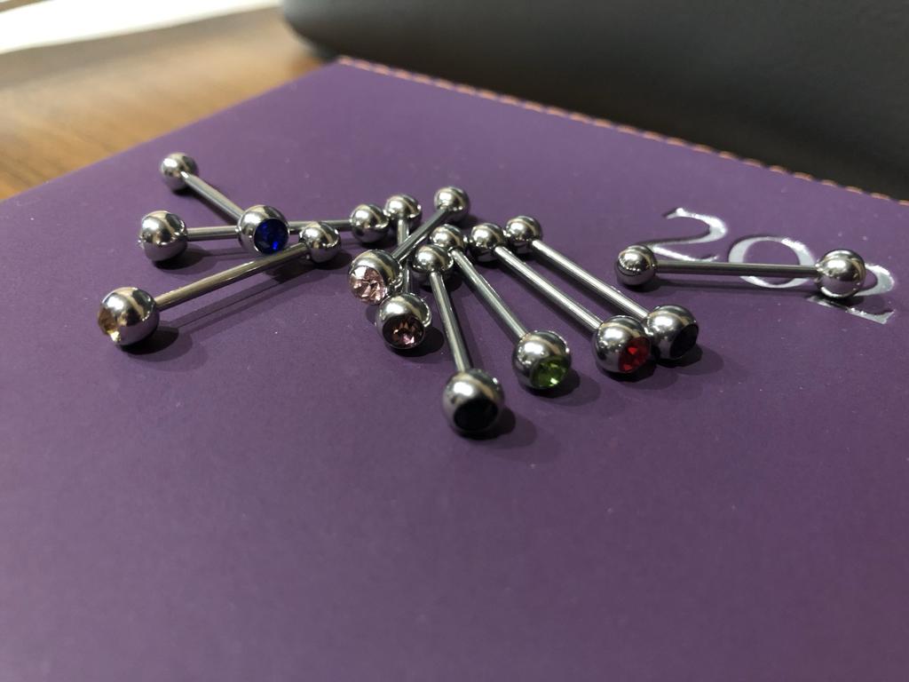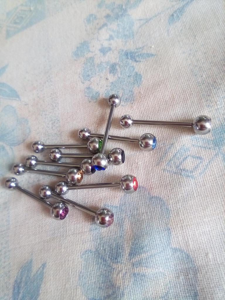 10Pcs Stainless Steel Lots Mixed Logo Ball Tongue Bars Rings Barbell Piercing