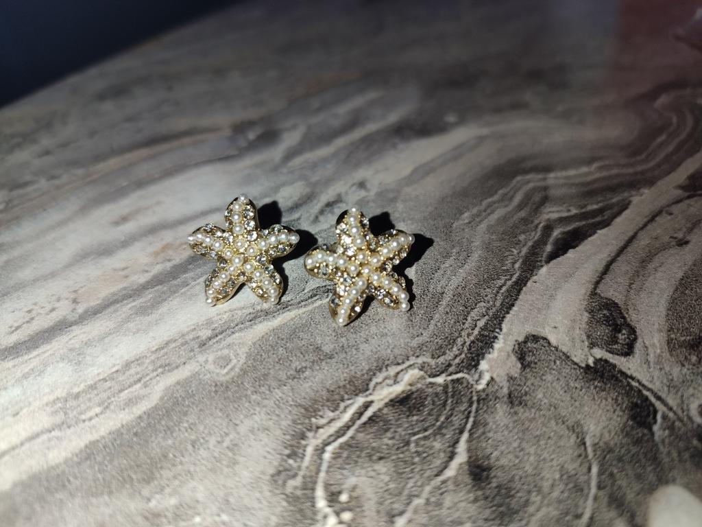 Fashion Rhinestone Pearl Starfish Star Earring Sea Ear Stud Earrings