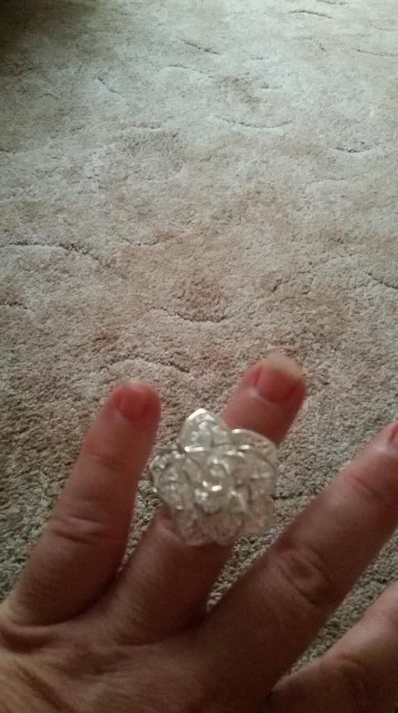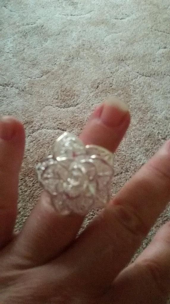 This is a very pretty ring even though the flower is quite large for your finger. You could also use it as a scarf ring