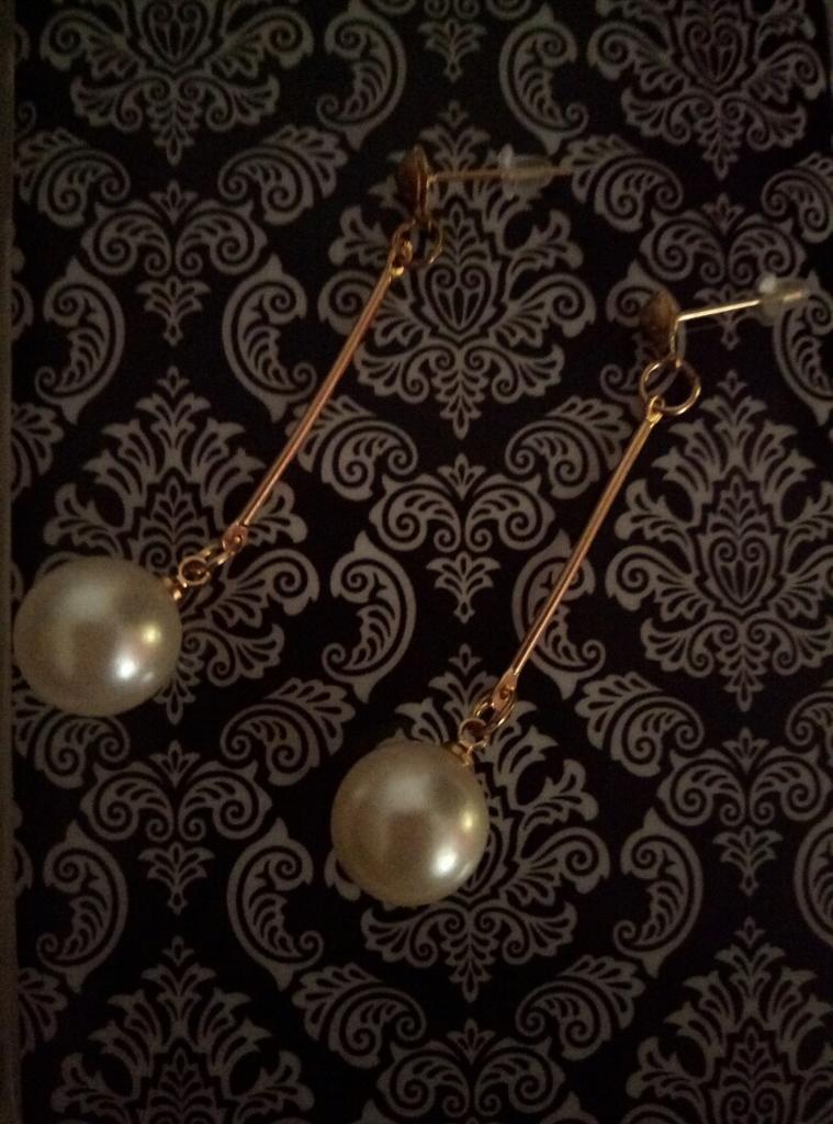 1Pair Women's Fashion Elegant Gold Plated Long Bar Faux Pearl Drop Earrings