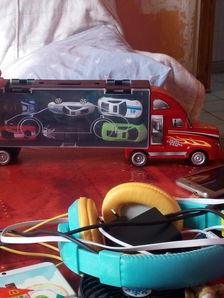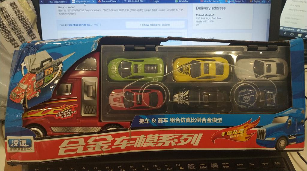The box a little damaged. The truck looks good and the cars too. we haven't opened it yet