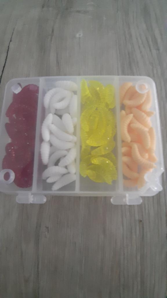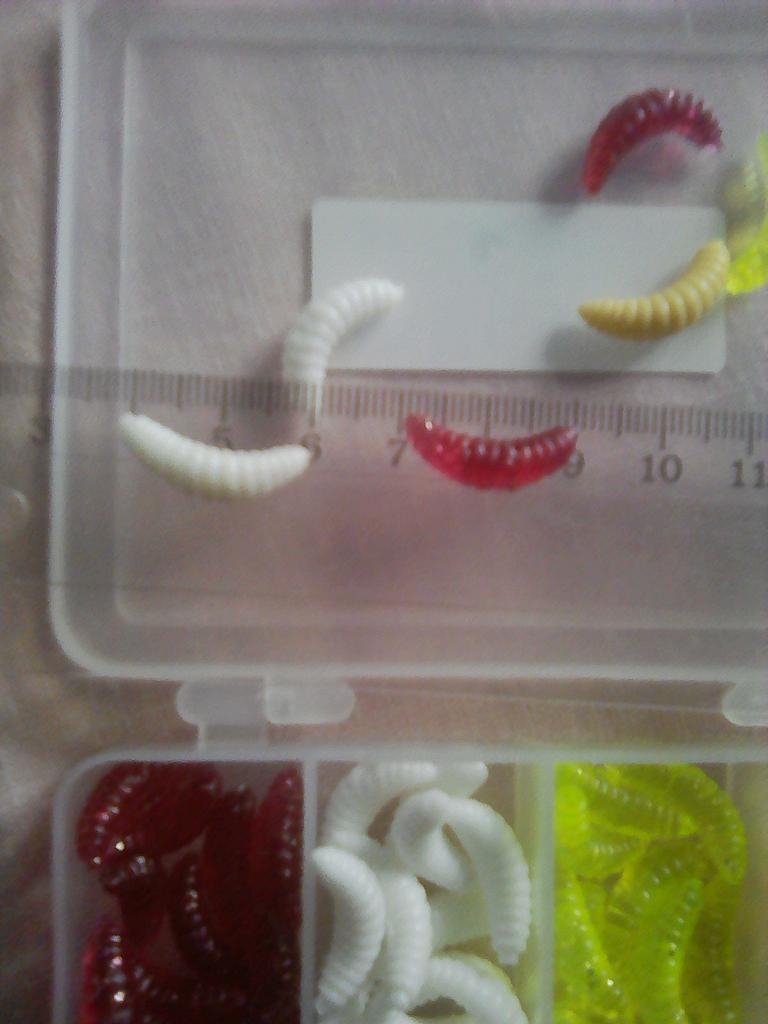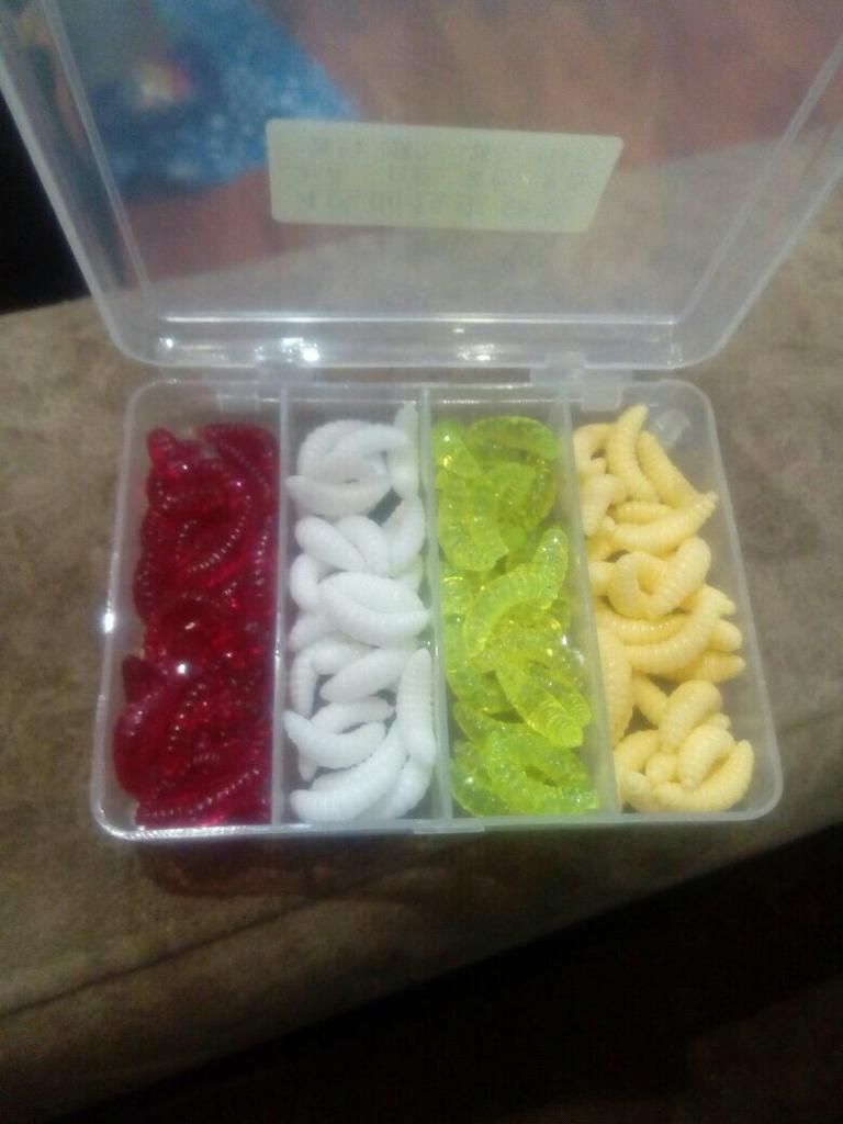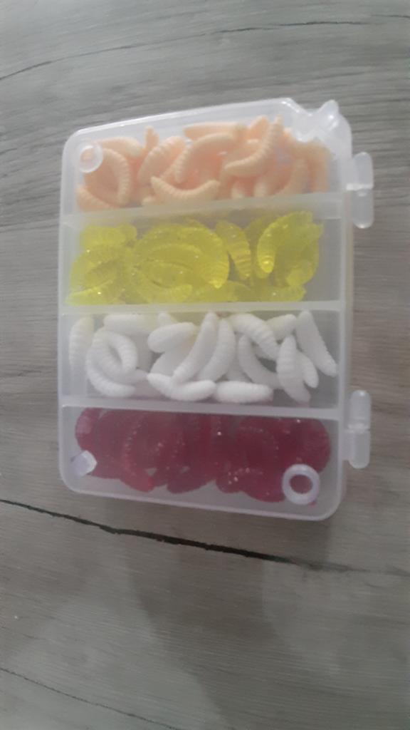 A very handy set. The larvae are quite large (photo next to the nail for comparison) In the summer we will check in work. I recommend.