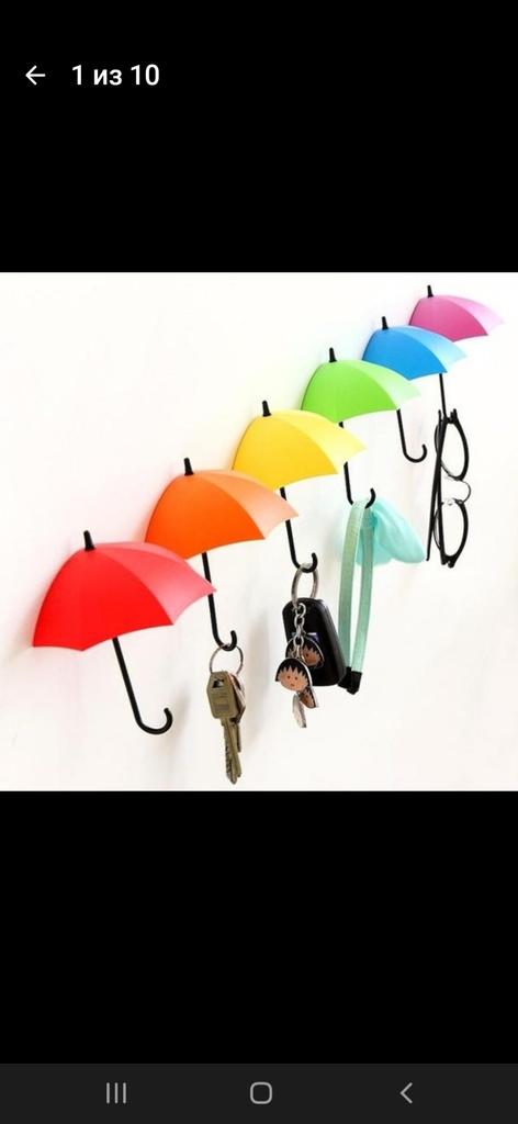 Random 3 Pcs Colorful Umbrella Wall Hook Key Hair Pin Holder Organizer Decorative Organizer