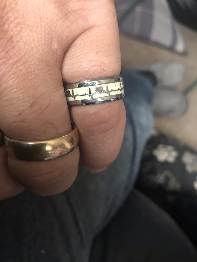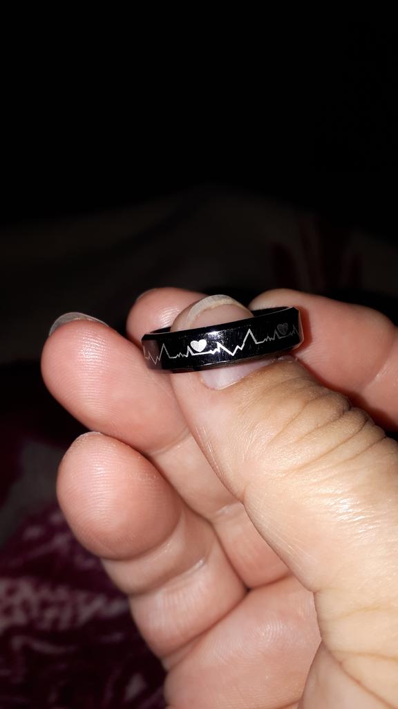 Electrocardiogram Stainless Steel Glow In The Dark Heart Rate Couple Finger Ring