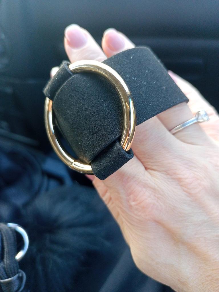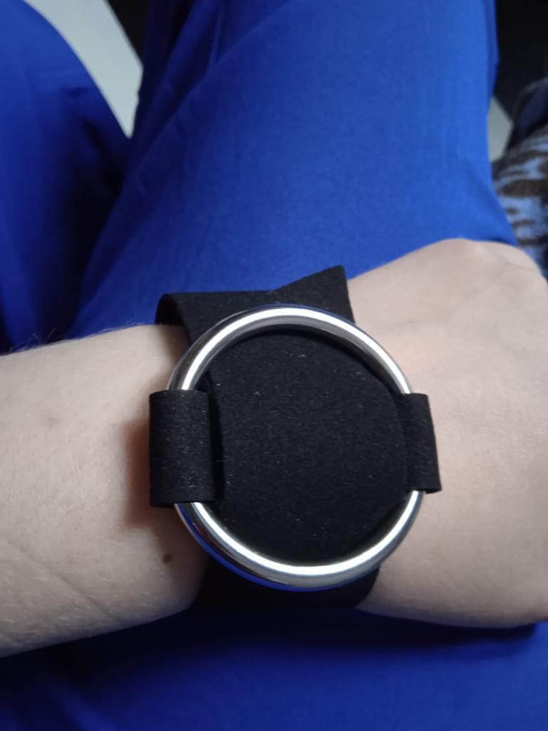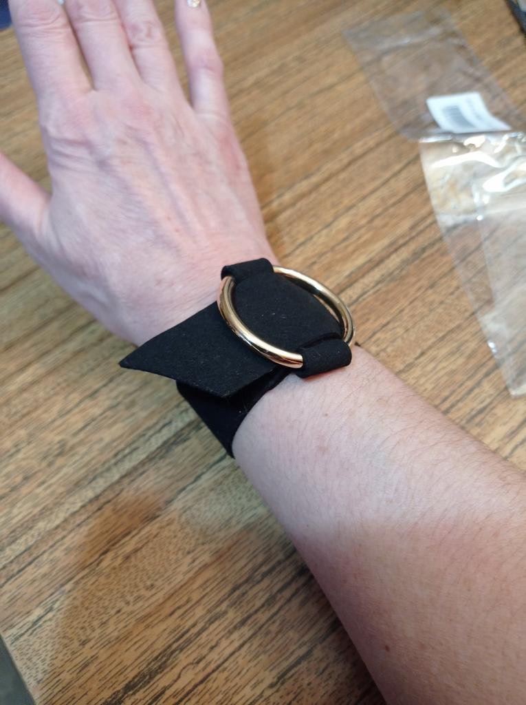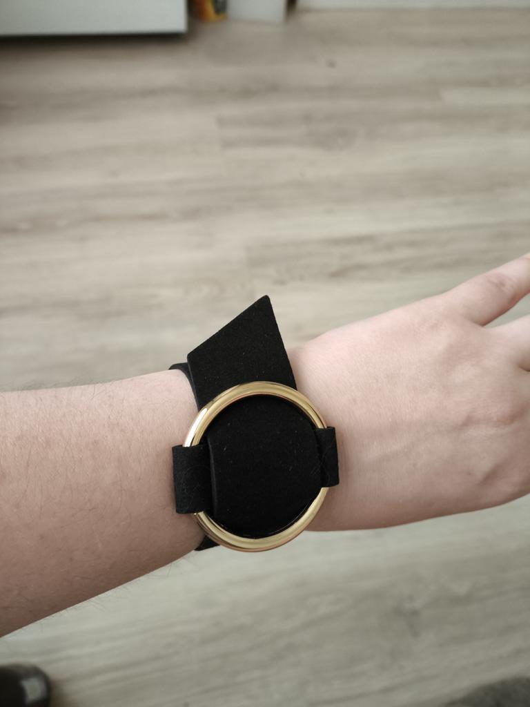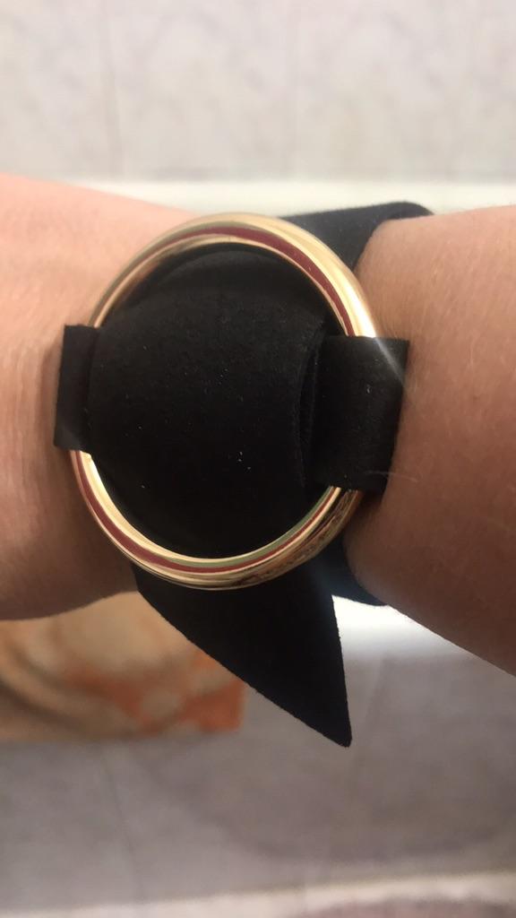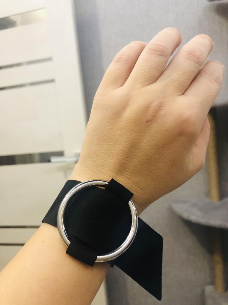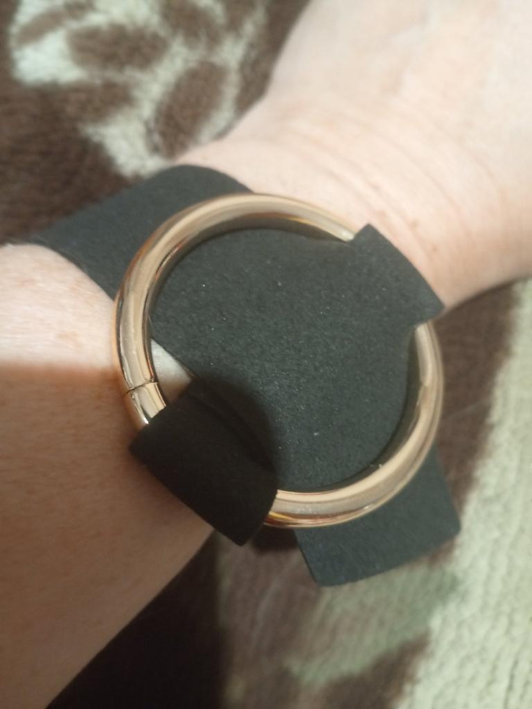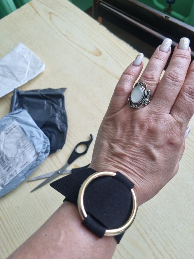 The accessory is noticeable. It looks very decent. Metal ring, artificial material, similar to velvet. Fits perfectly on the hand. You can fit into different images, this accessory will definitely not go unnoticed. I recommend.