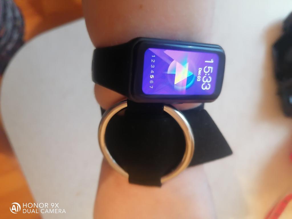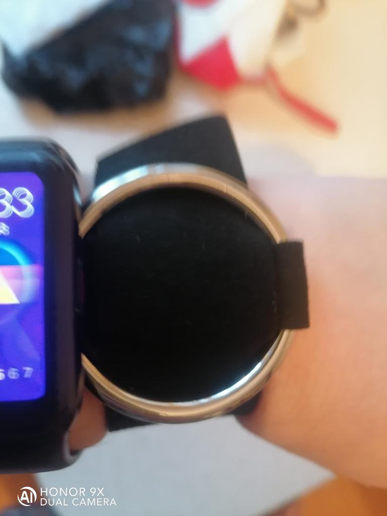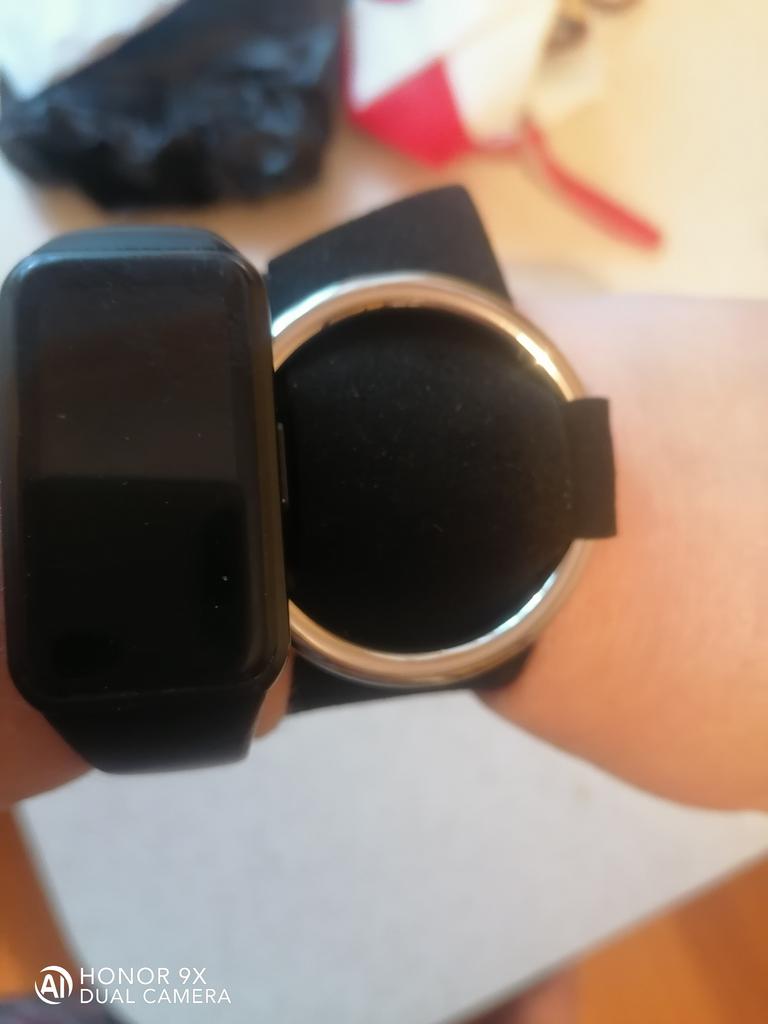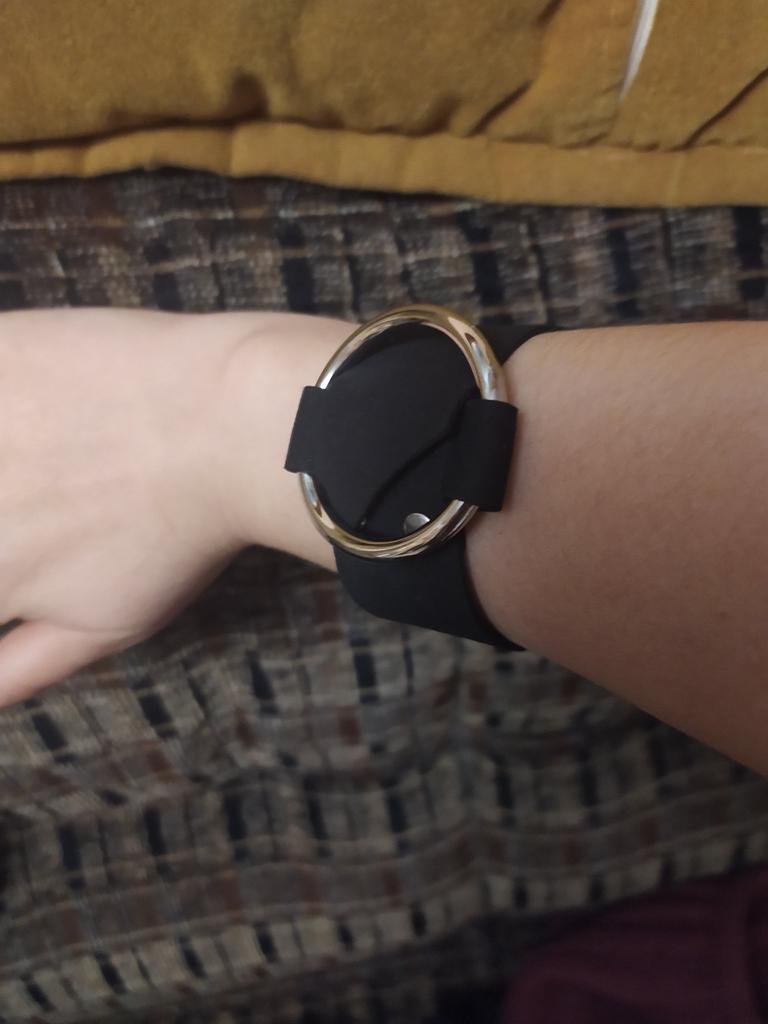 Looks very stylish (classic minimalism). The strap is without a fastener, the material is something like felt, it doesnβt slip, it holds well and doesnβt come loose.