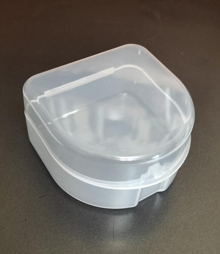 The dental box arrived whole. Transparent plastic, not bulky, snaps shut, but not airtight. It suits me quite well..