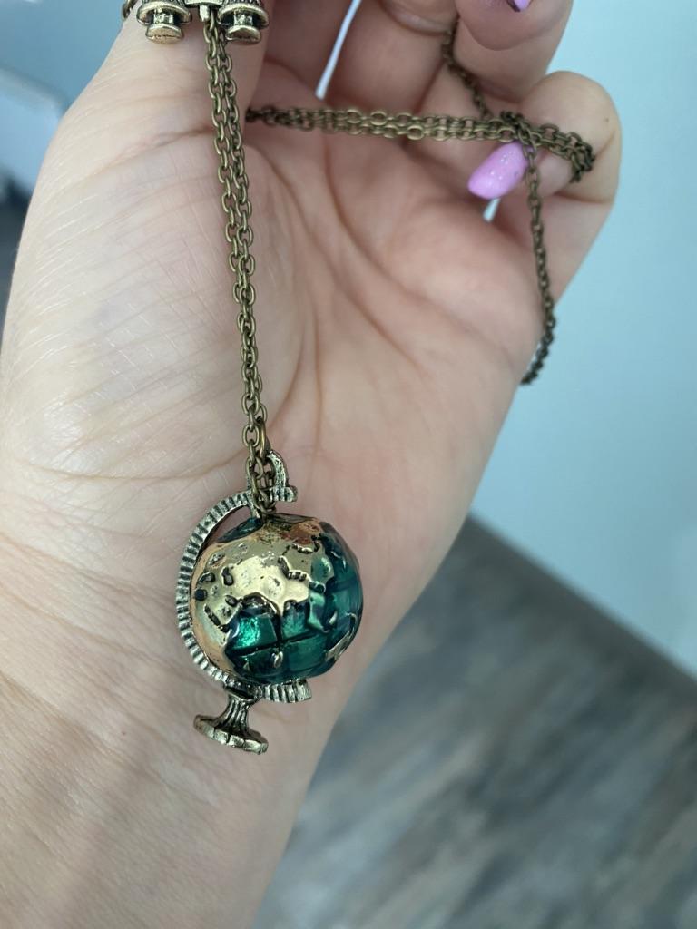 Women's Vintage Globe Planet Earth World Map Ball Binocle Pendant Long Necklace Suspension Trinket
