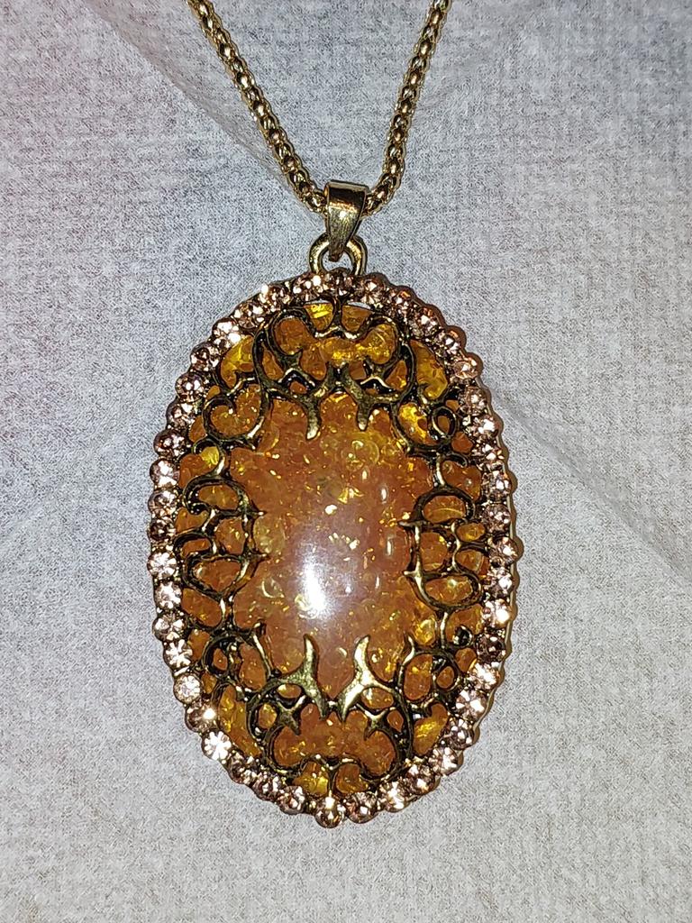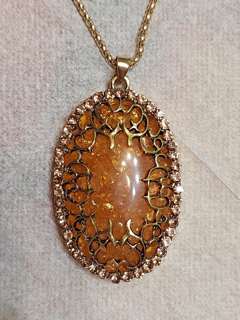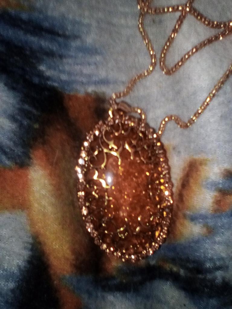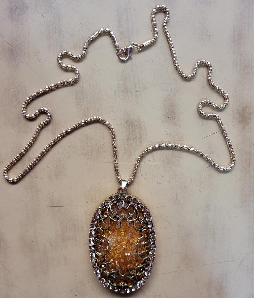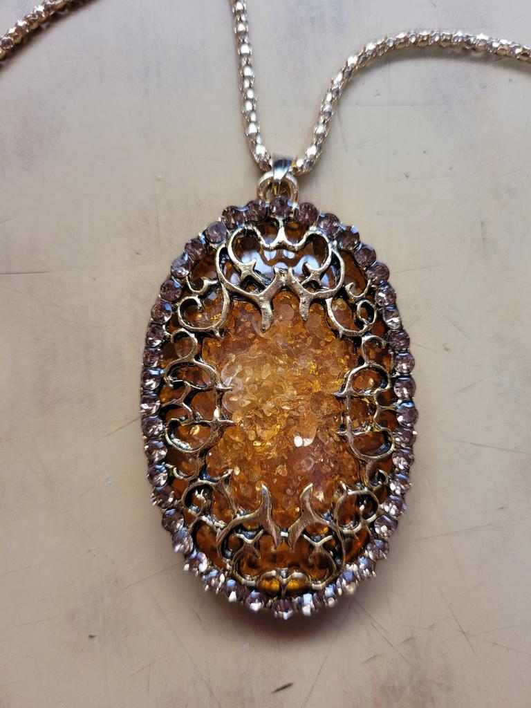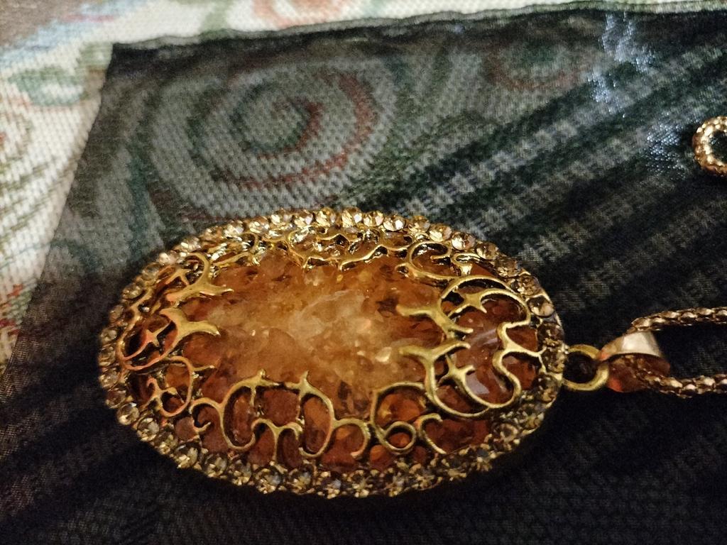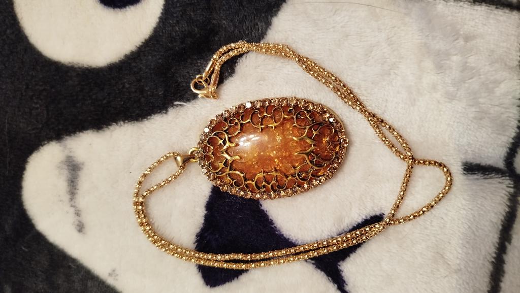 Simply lovely! The insert resembles amber, shiny stones along the contour... a very nice pendant. Thank you very much for such beauty!