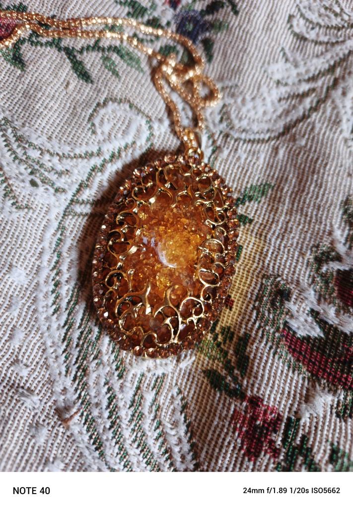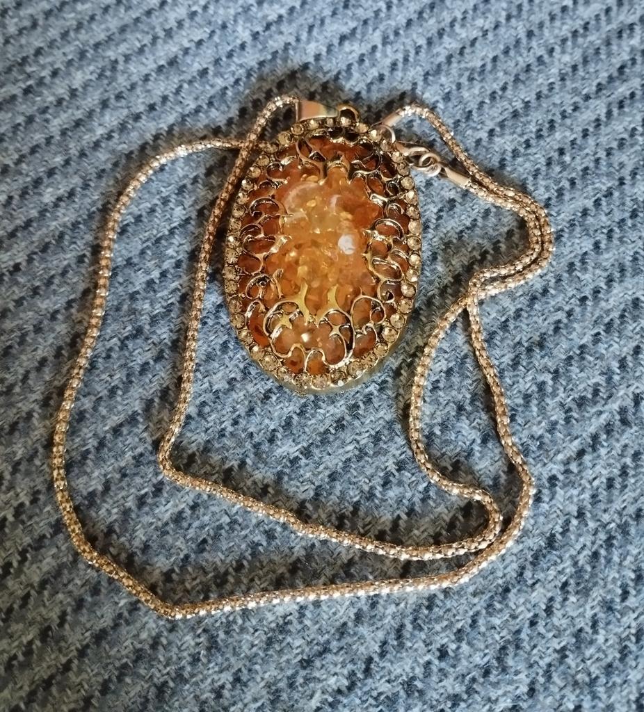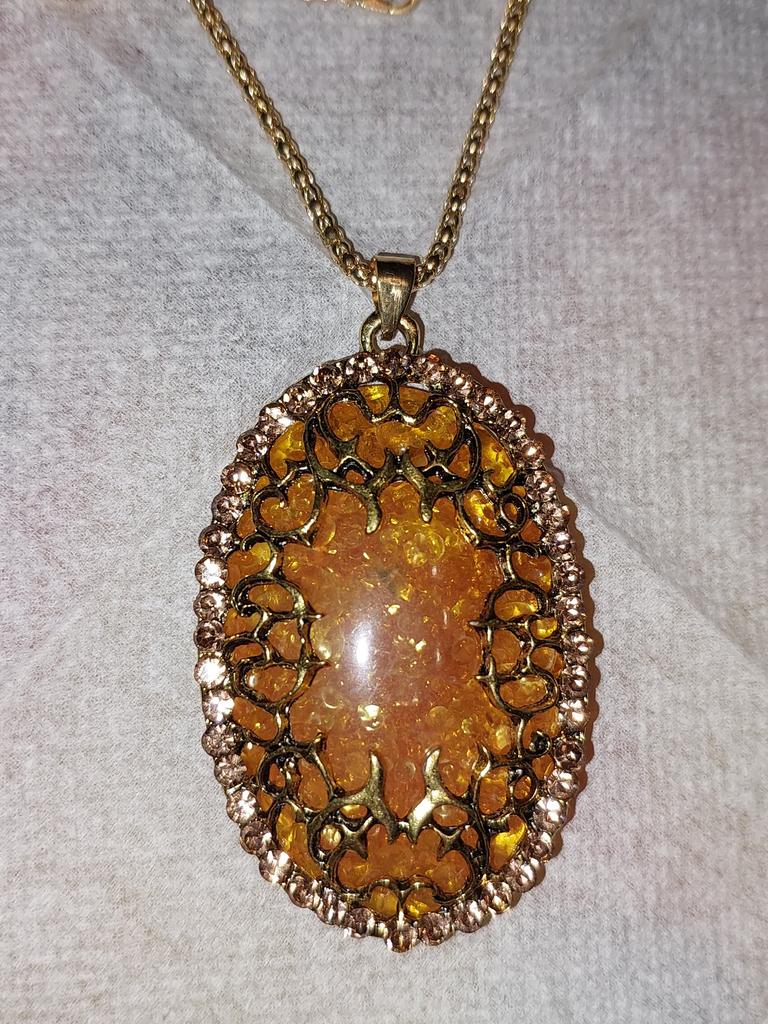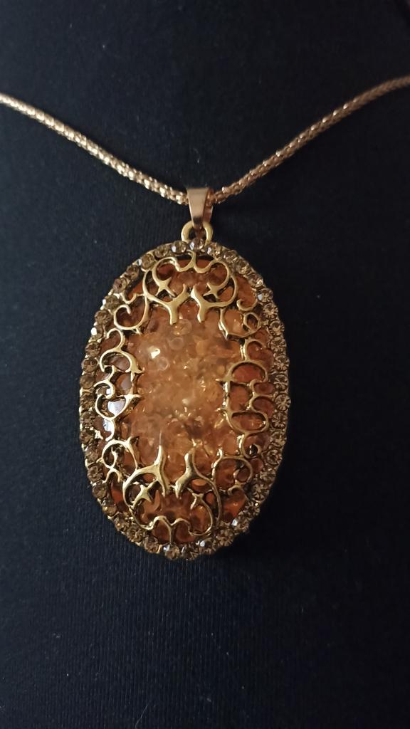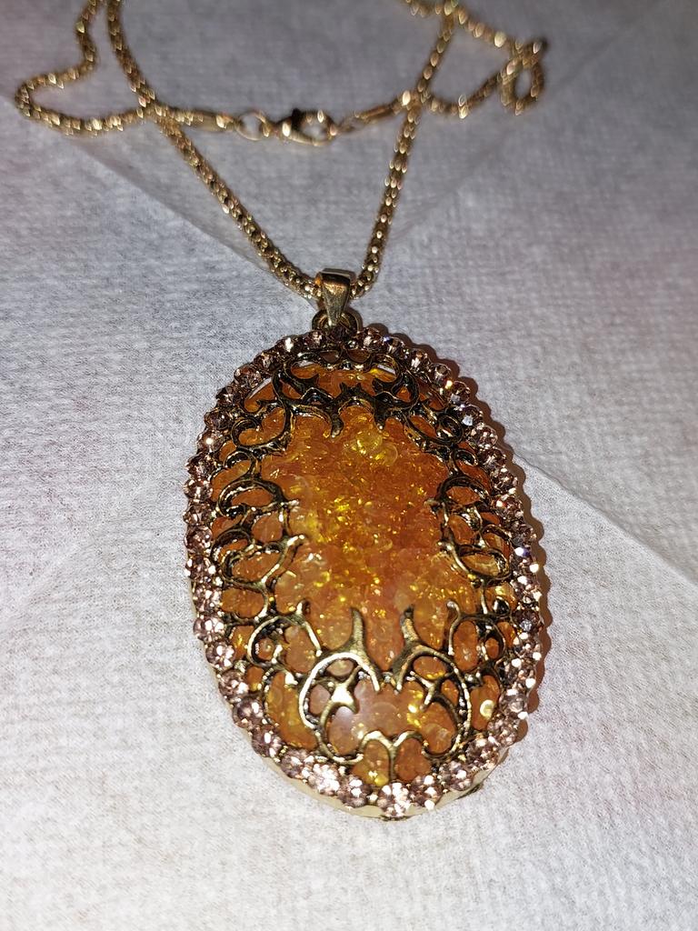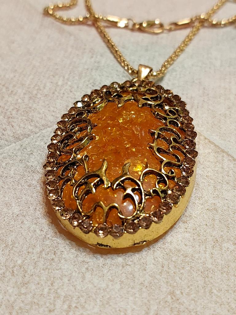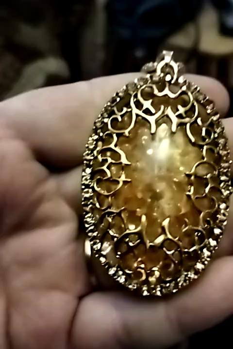 Simply lovely! The insert resembles amber, shiny stones along the contour... a very nice pendant. Thank you very much for such beauty!