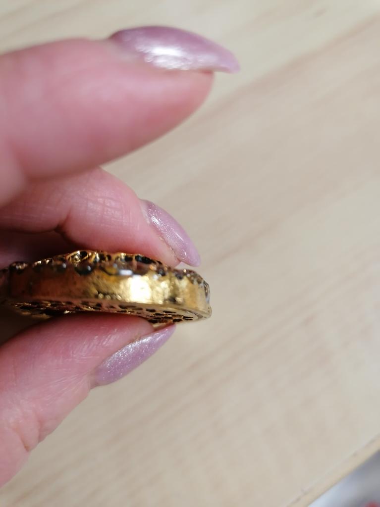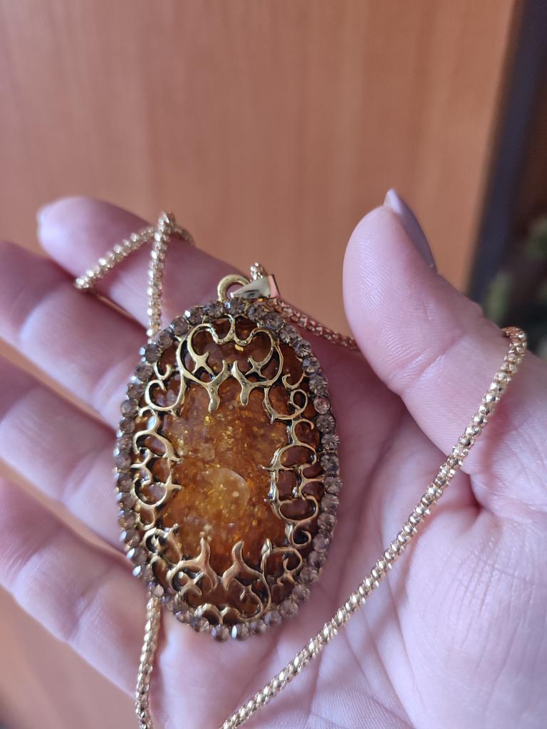 Everything according to the description, except for the lack and the appearance of cheap jewelry. I tried to bend, push, bending the metal - nothing worked. It does not pull on amber. Metal openwork makes the look more expensive, but the color of yellow gold and sloppy work gives it a primitive look. Disgusting.... 😭😭😭 An open face... It seems that it will fly away soon... Thanks.