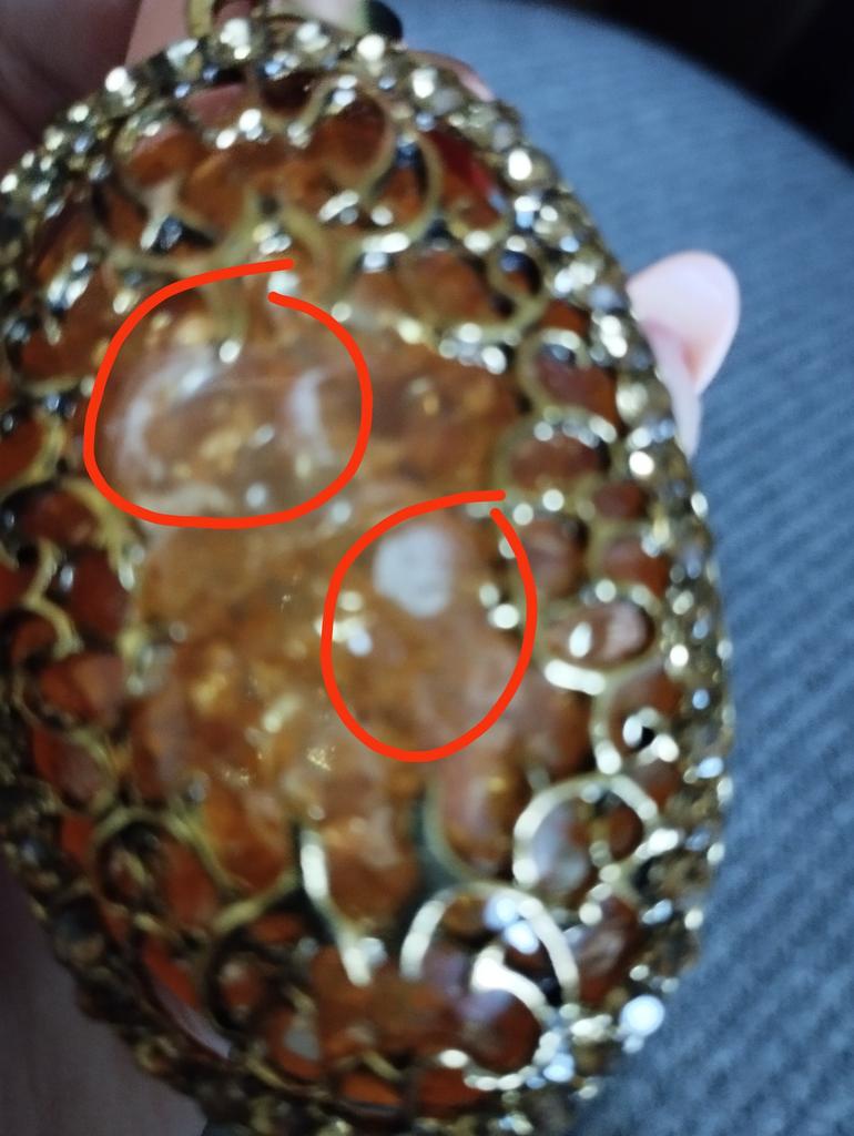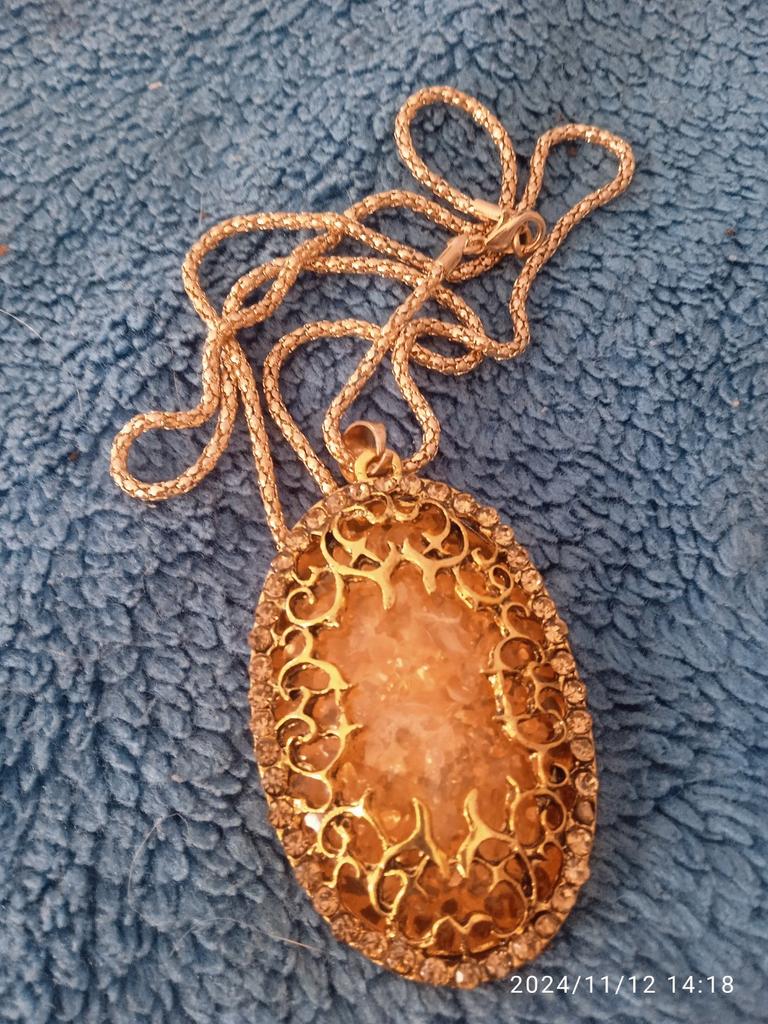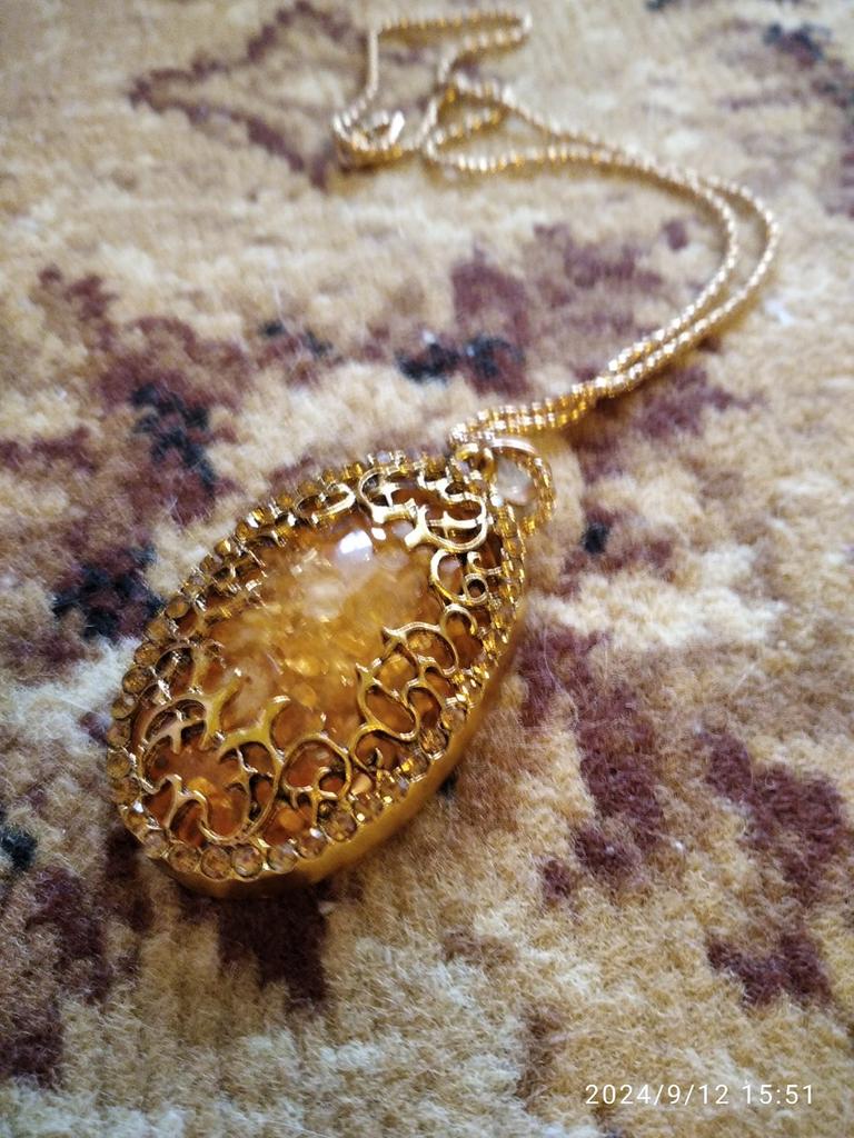 One bead is missing from the pendant, and it's made sloppily. The other beads are glued on crookedly. It's a shame, you can't wear it in this condition.