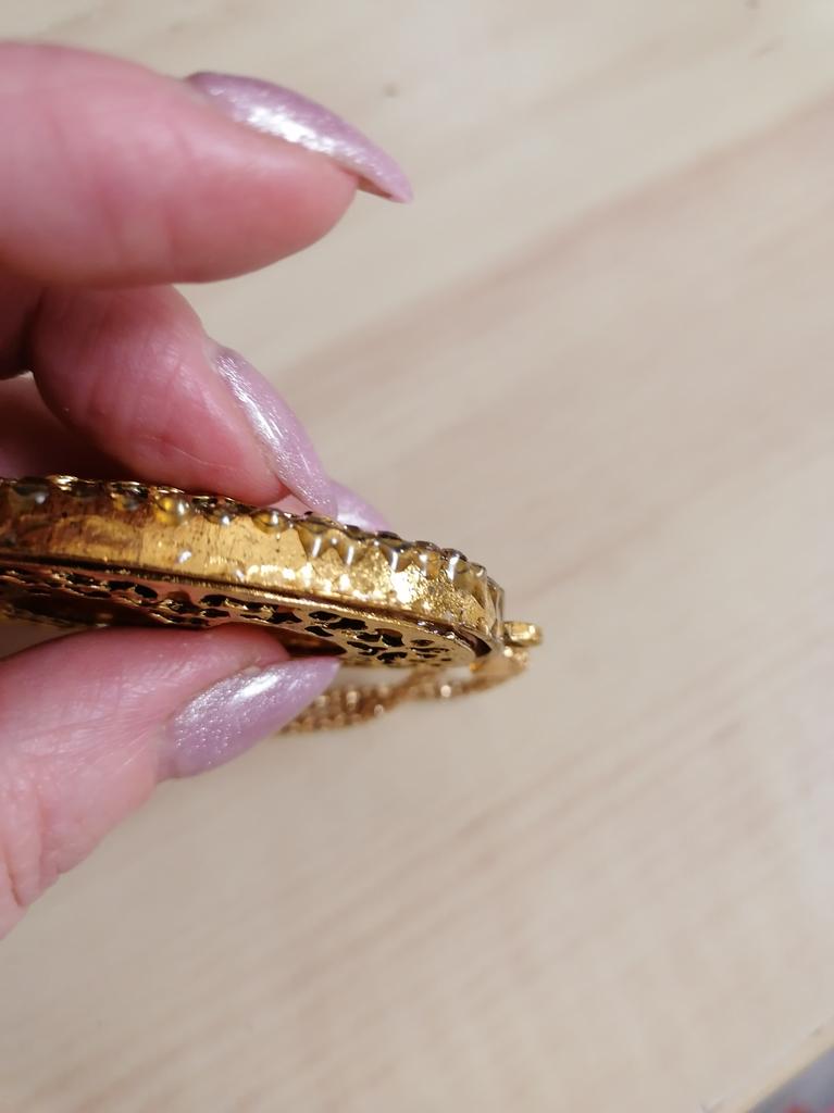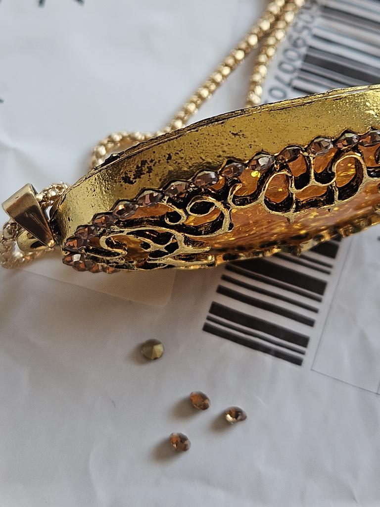 The product is of poor quality; the crystals of the pendant have fallen out, the gold color on the sides has worn off, the pendant is glued crookedly. I do not recommend it. Изделие низкого качества; кристаллы кулона выпали, золотистое покрытие по бокам стерлось, кулон приклеен криво. Не рекомендую.