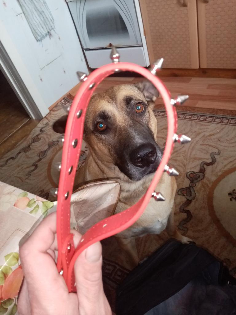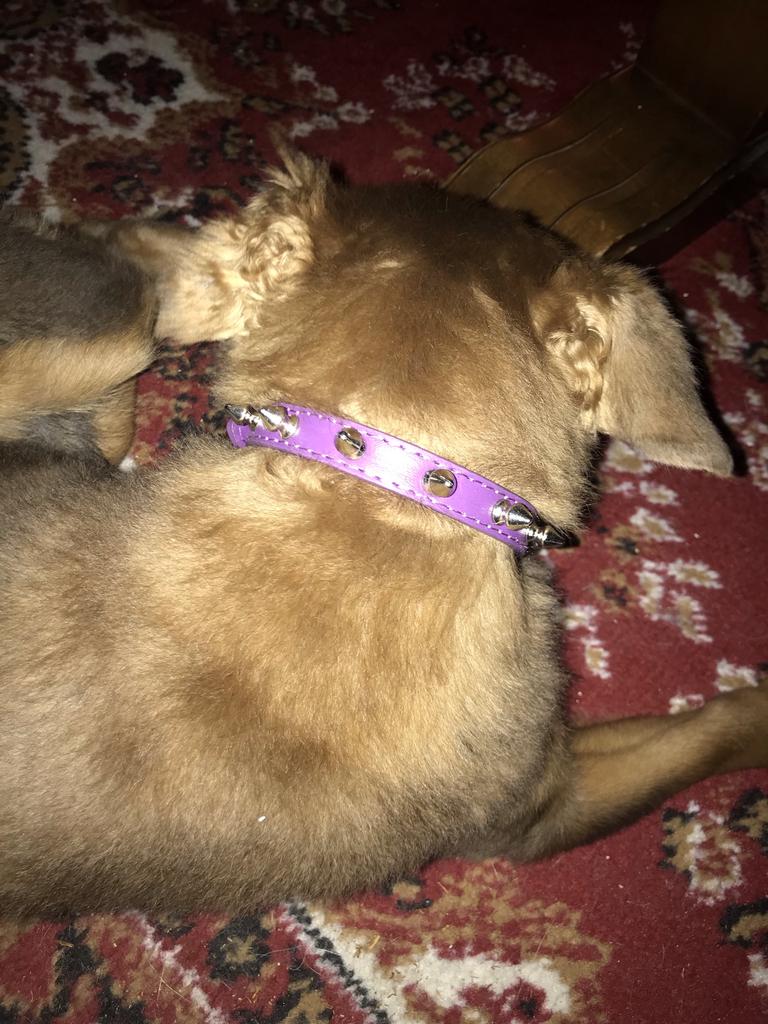 For a size S it is very long and too big for a 5.5 month old chihuahua puppy. It was necessary to make two additional eyelets - one to fasten the collar around the neck and the other to hook the excess strap onto the first stud without cutting it off. The collar is quite heavy.