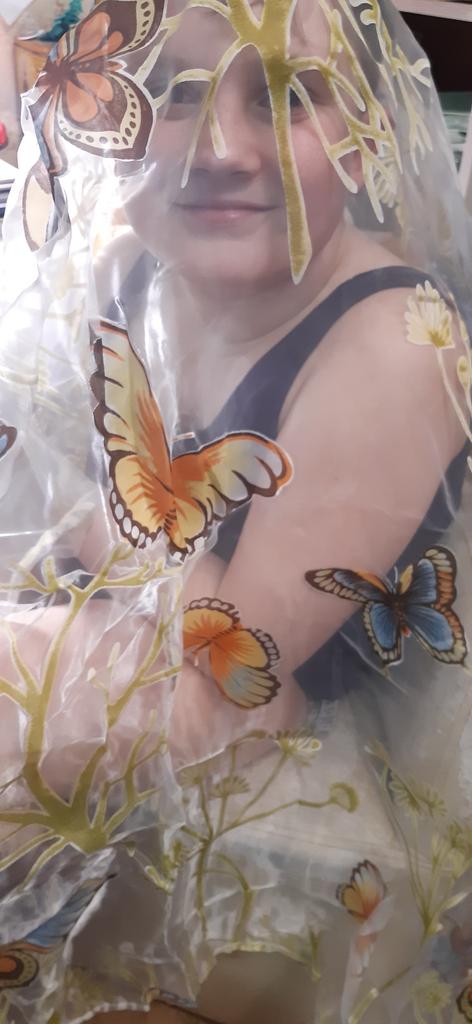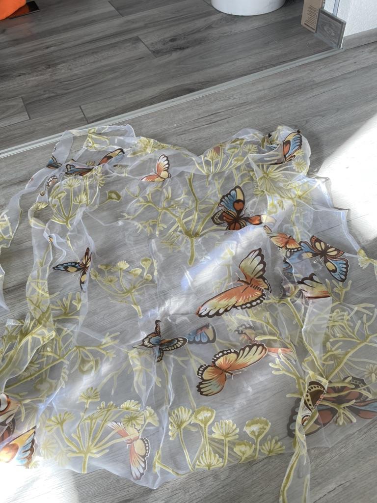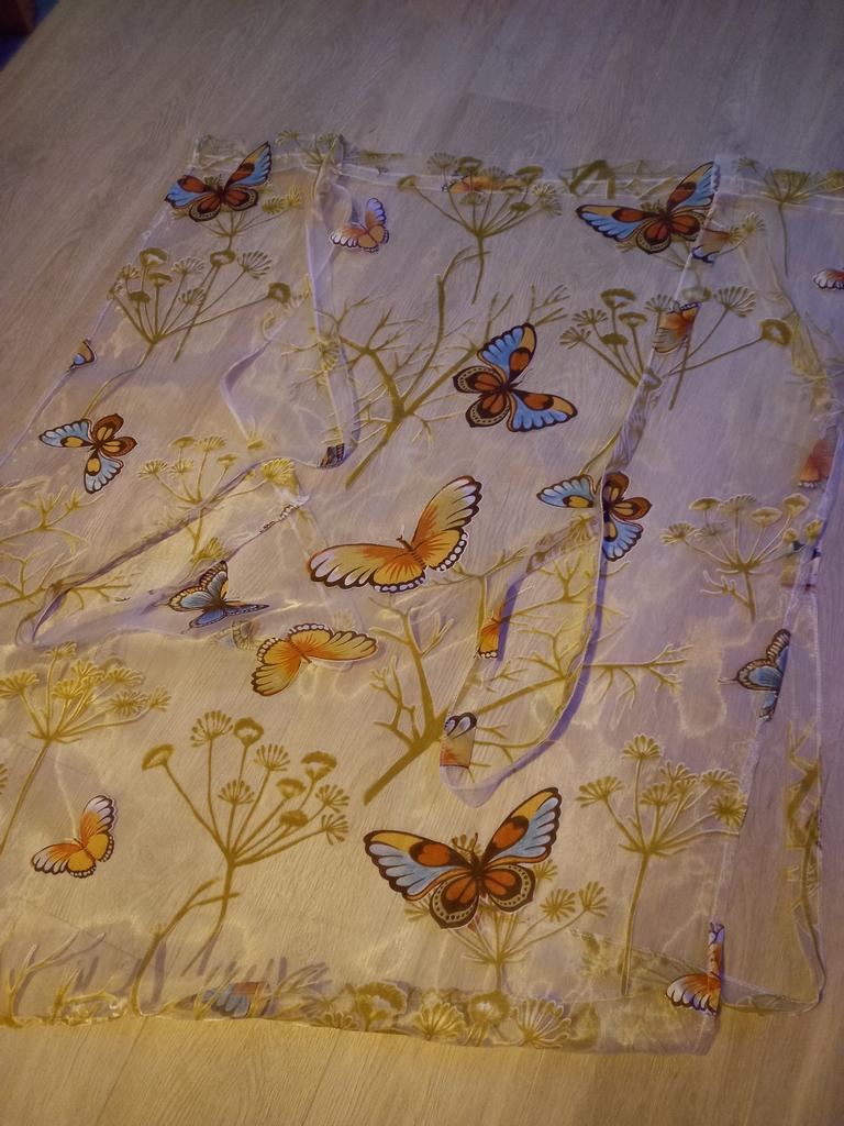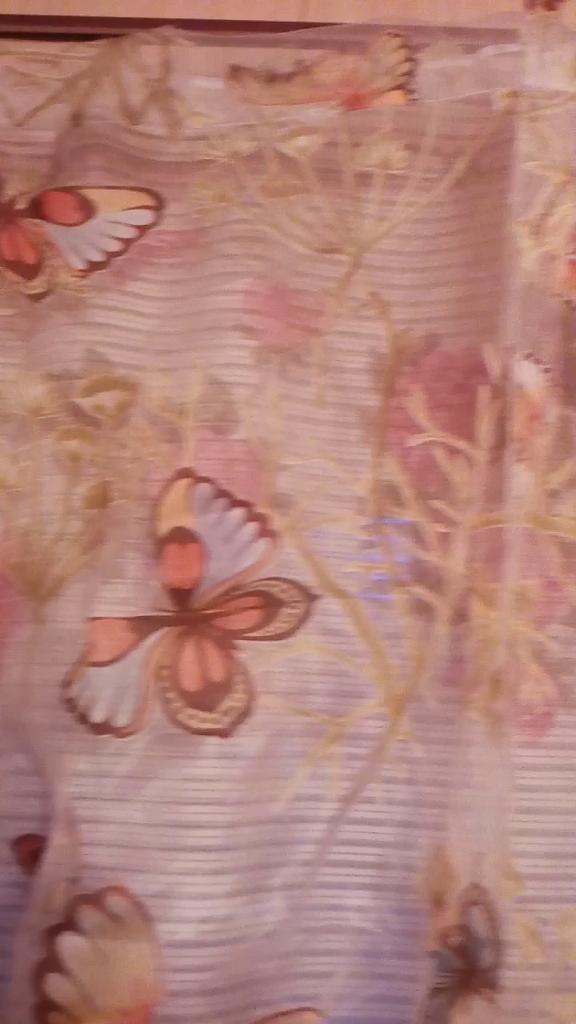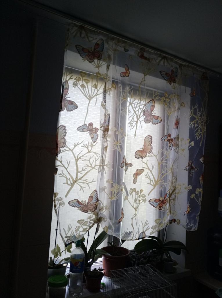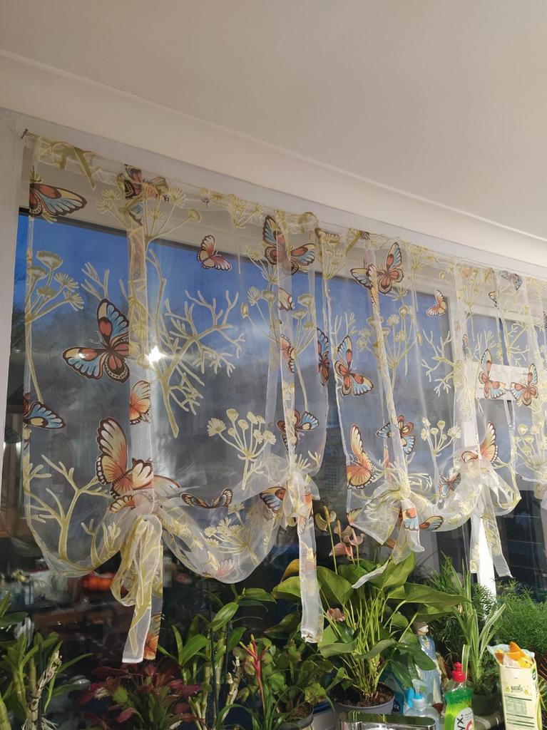 Delicate voile curtain with Butterflies.🦋 Smells due to the pressure quite strict.🤔 The quality is quite passable.💐 It was delivered in two weeks.🛬