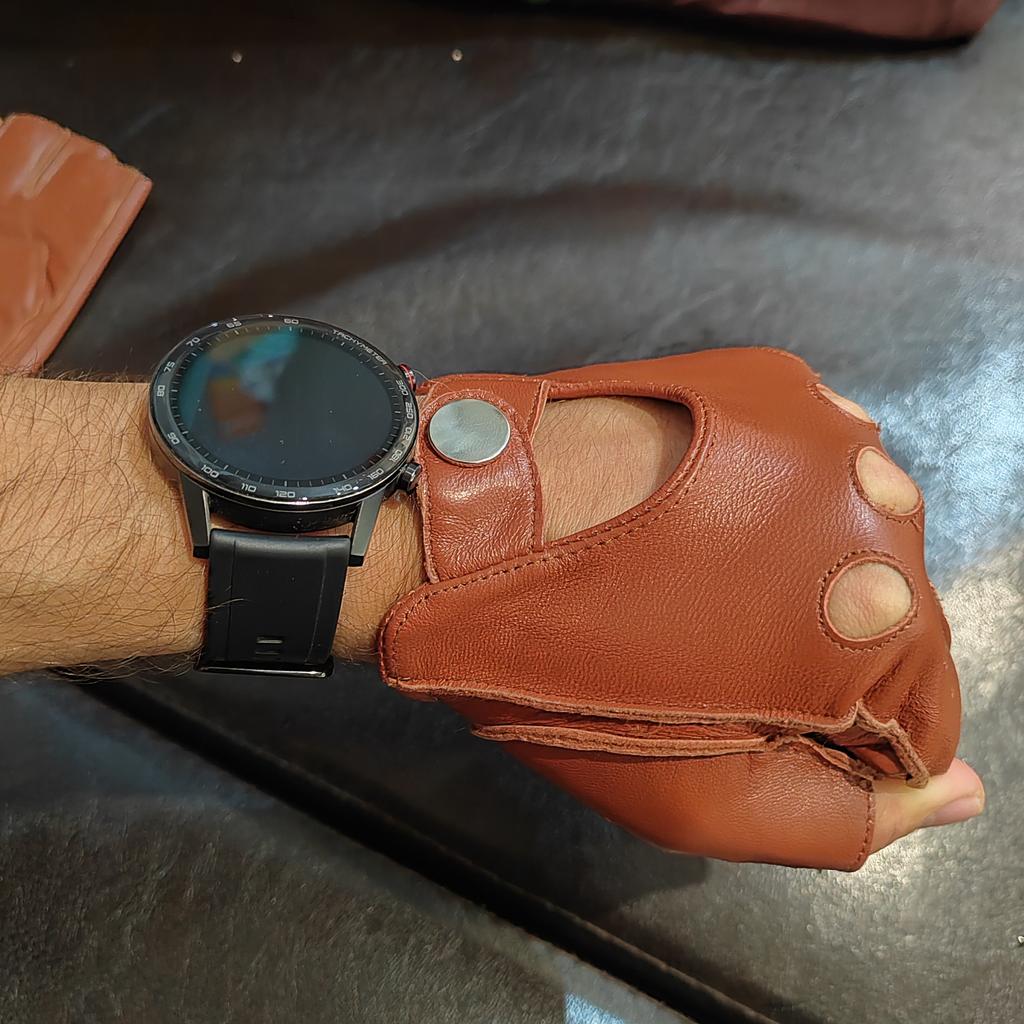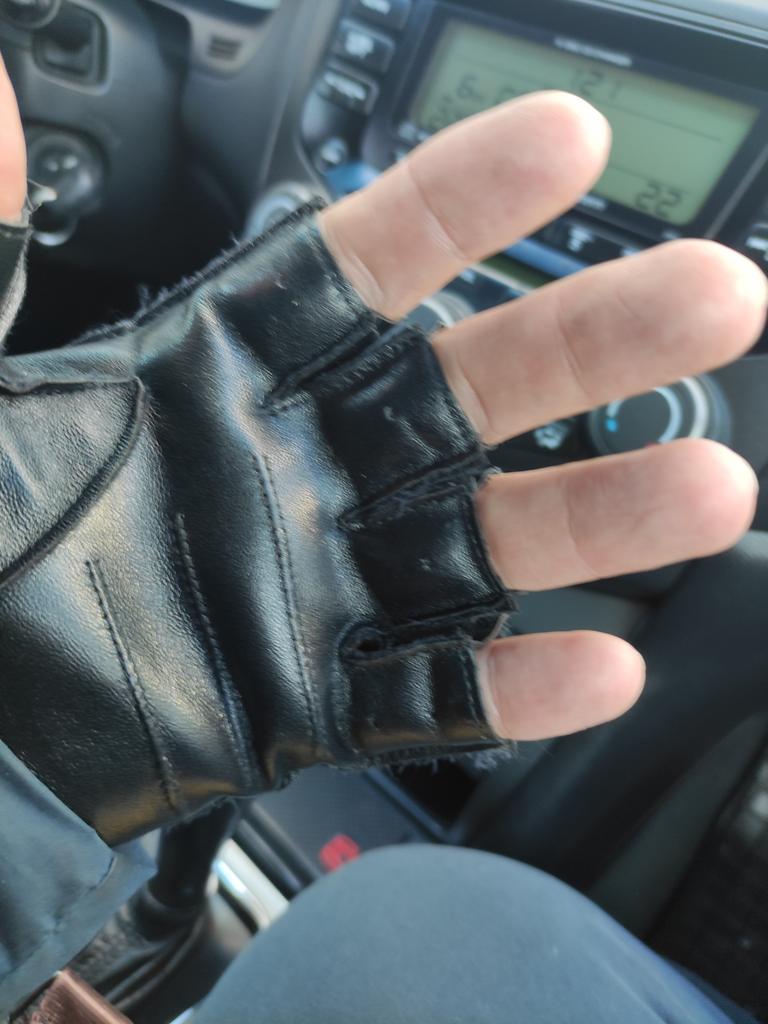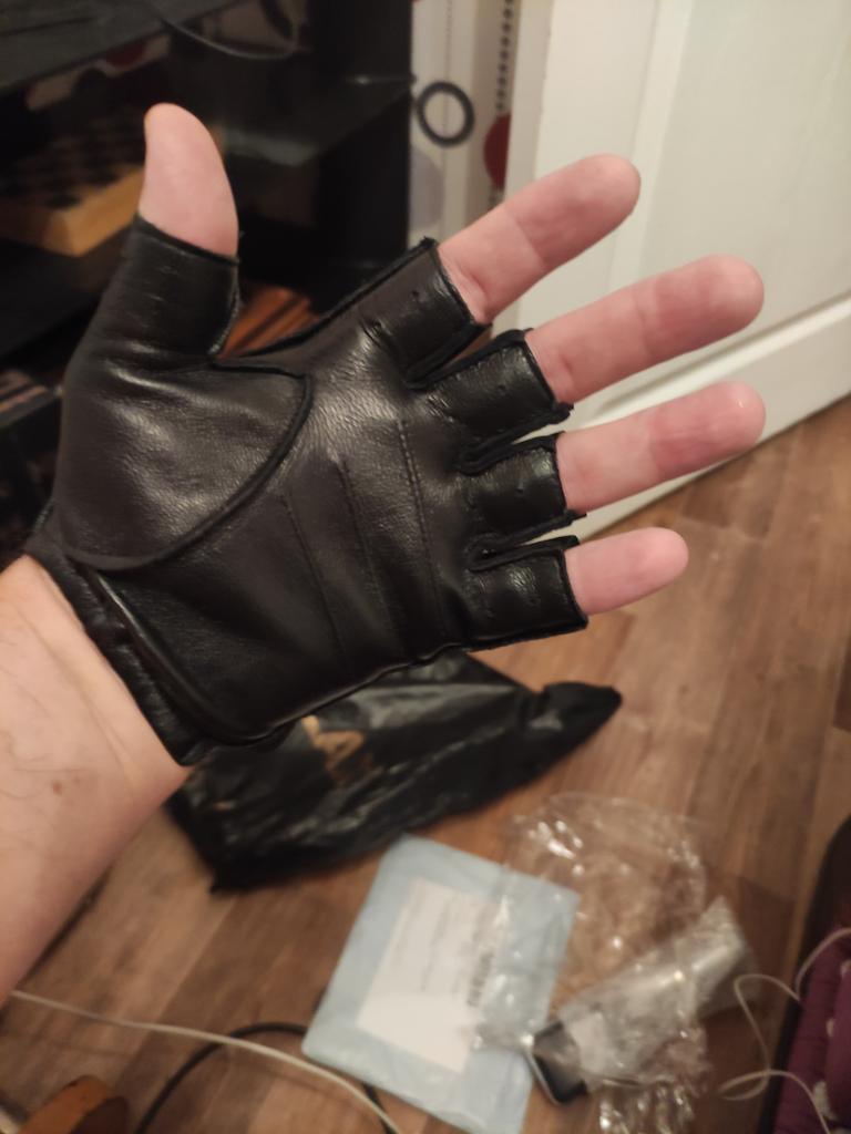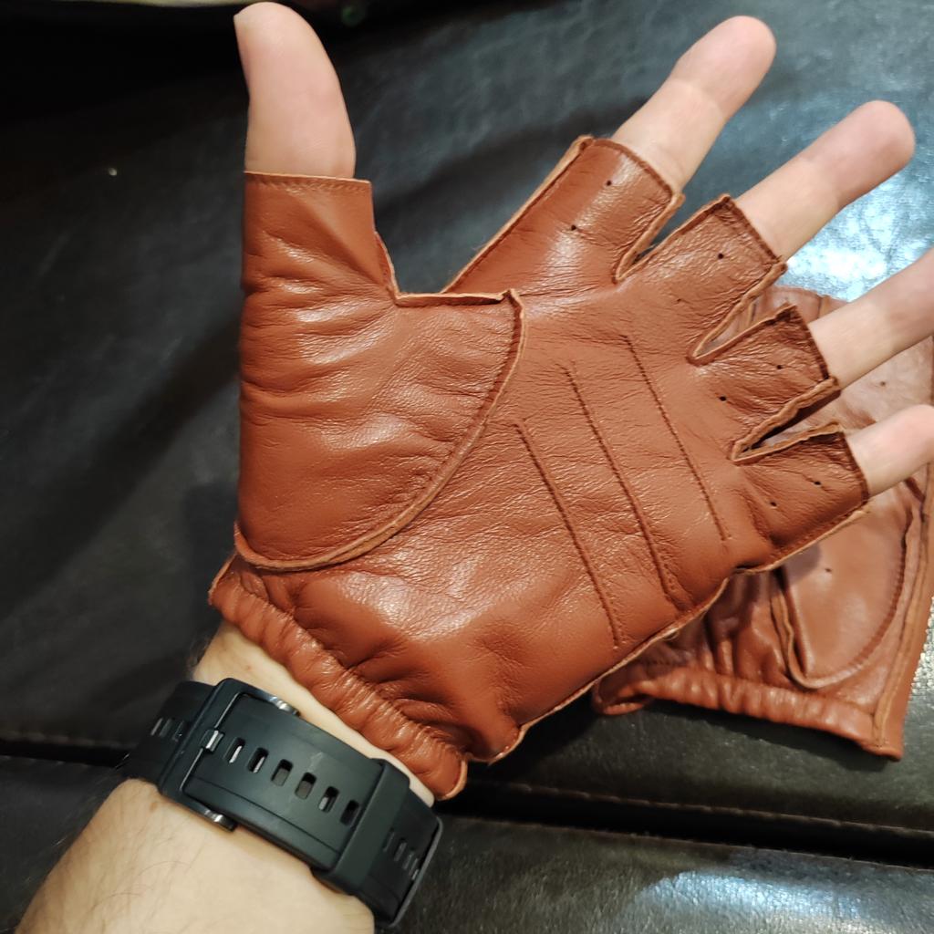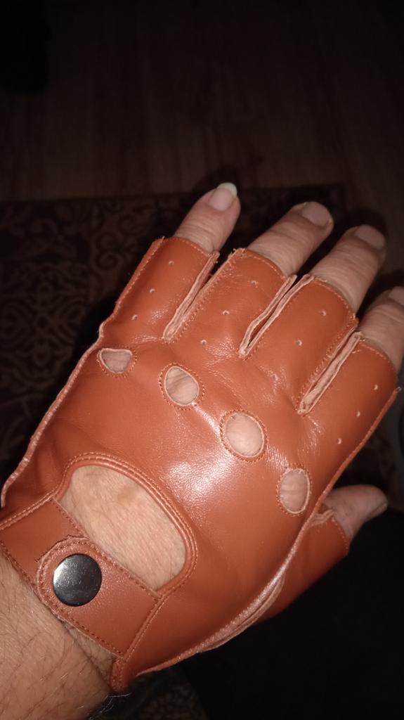 They sit well on the hand, comfortably. There are unstitched spots on both gloves. There is no smell of leather at all, but there is a slight smell of chemicals. Good eco-leather for furniture.