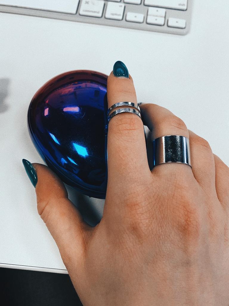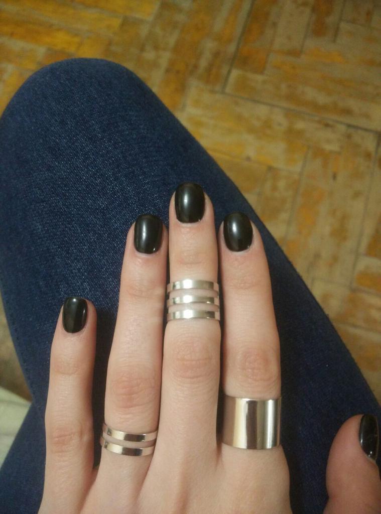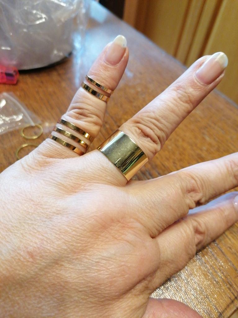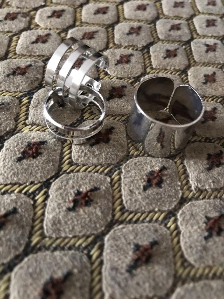 Ordinary rings made of thin metal. It is easy to bend if necessary (however, I was too lazy to adjust the size of the third ring). The edges are a little sharp, so there is a chance of getting cut. It will most likely leave marks on the fingers and the metal will change color quite quickly, but for the price it is still a great option for minimalist rings