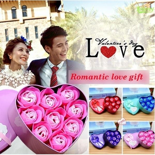 Heart Scented Bath Body Petal Rose Flower Soap Heart Metal Box Rose Flower Decor Gift Romantic