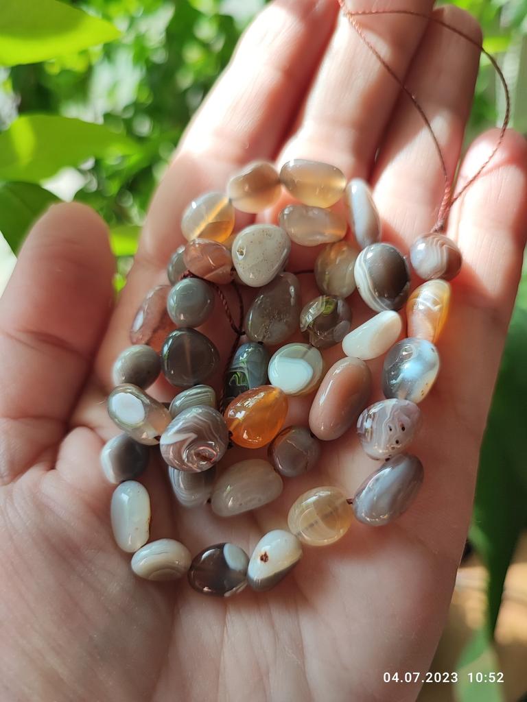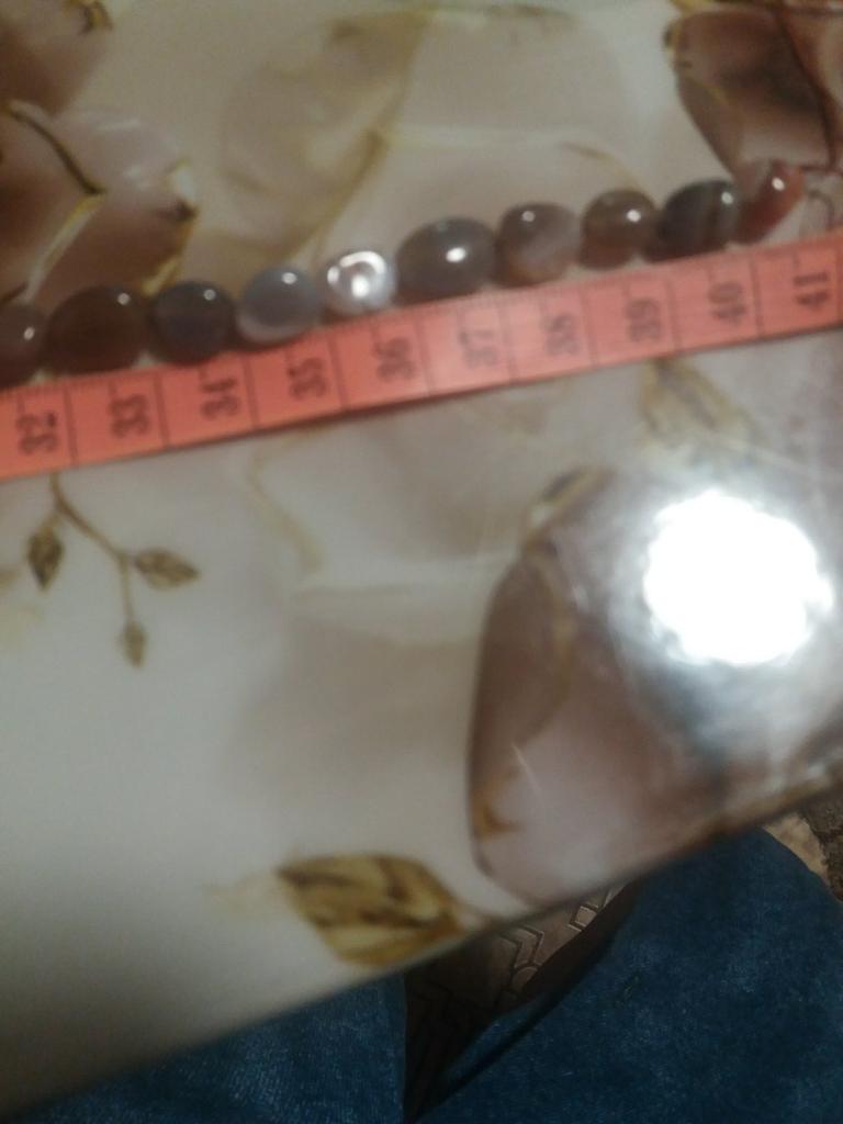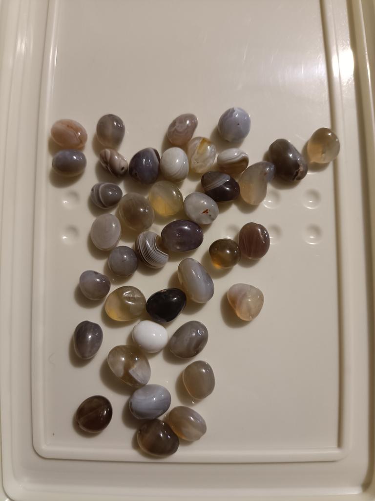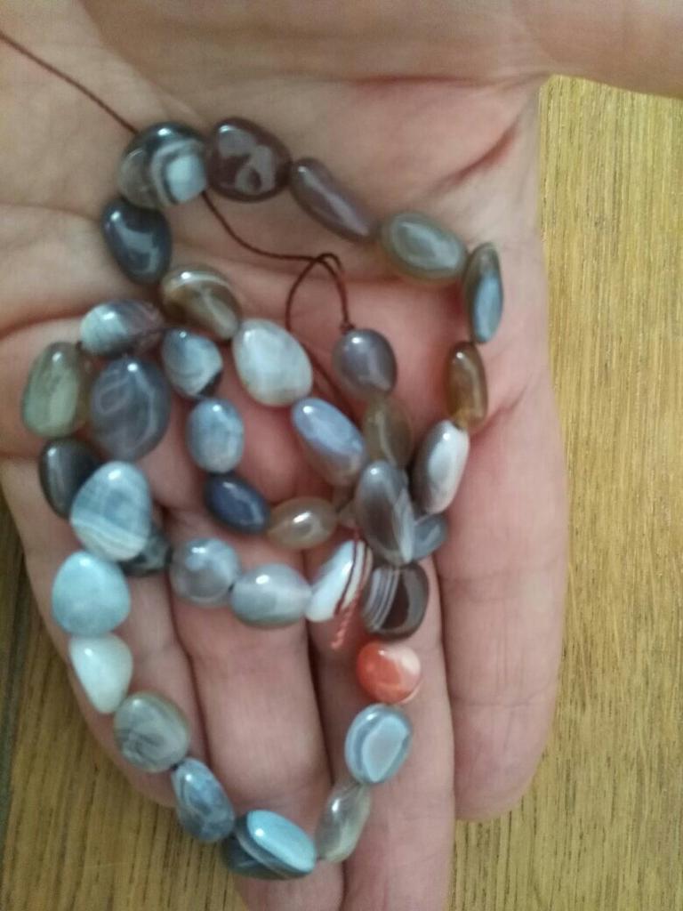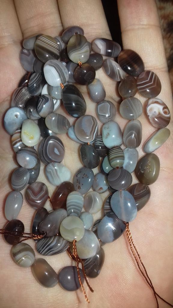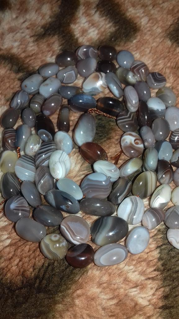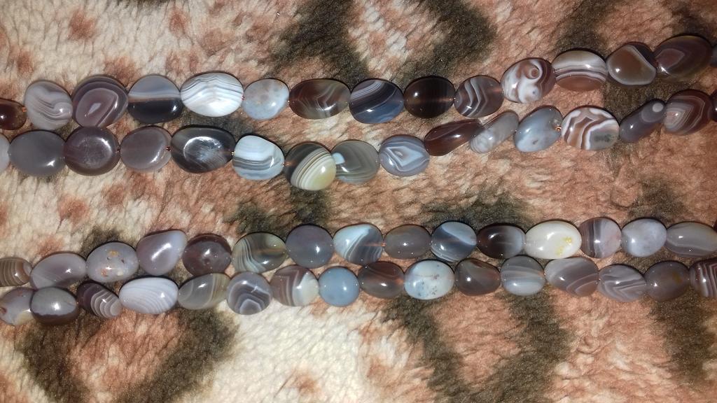 Botswana agate is very beautiful, there are no two pebbles of the same pattern in the bottom. Natural, natural, cold, pleasant to the touch. In the low, which I got 35pcs, its length is 41cm. Pebbles ranging in size from 1 cm to 1.5 cm. Thanks everyone.