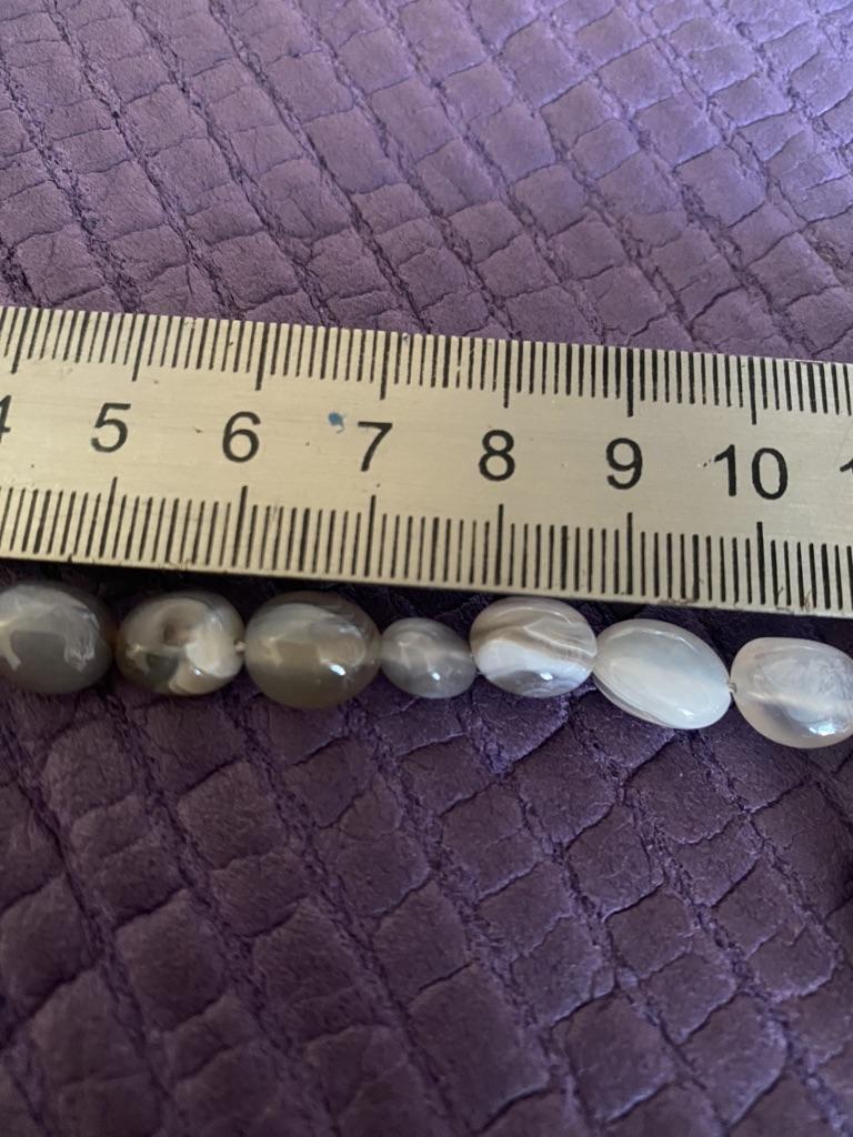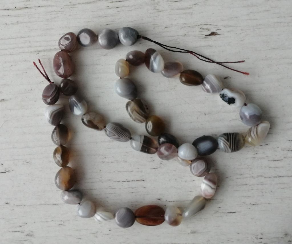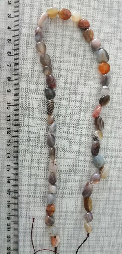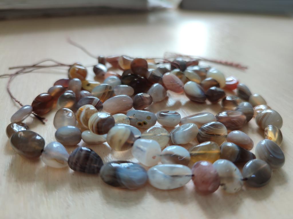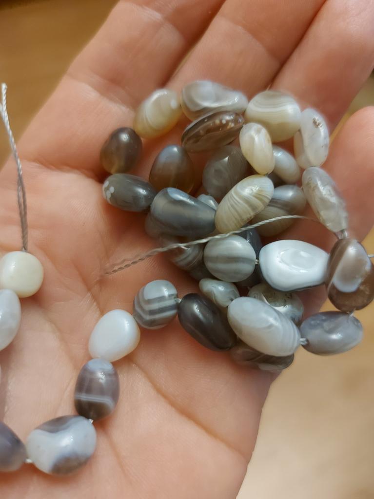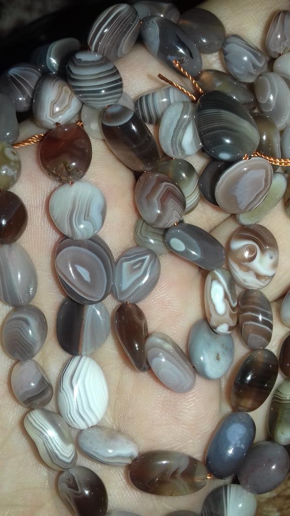 Botswana agate is very beautiful, there are no two pebbles of the same pattern in the bottom. Natural, natural, cold, pleasant to the touch. In the low, which I got 35pcs, its length is 41cm. Pebbles ranging in size from 1 cm to 1.5 cm. Thanks everyone.