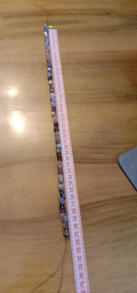 Sorry. What have I got.? 42 pieces. Ok. But the size of one stone is 5-6 mm. In the resilt the chain is too small to put around the neck. I cannot do it. If the size is smaller than advertised than the seller has to send about 48 pieces. Then it is possible to use. In your pictures every stone is really much bigger. Those who are going to order. Pay attention to what I have said. If you still keep to the idea to order, definitely order 2 chanrs of stones. I am not satisfied. I do not suggest. Now I have to think how to male it longer and what stones I can add.