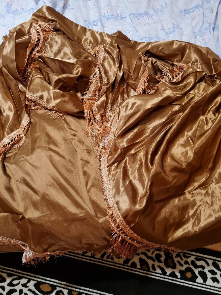 Just arrived. At this first unwrapping, they look really lovely,. They need a gentle steam iron at distance and then putting up for closer look. So that task awaits me later. Delighted with them. They a are a true bright orange with rich satin-like sheen, delicate and delightfully pleasant to the eye. Thank you. 👍☺️👏